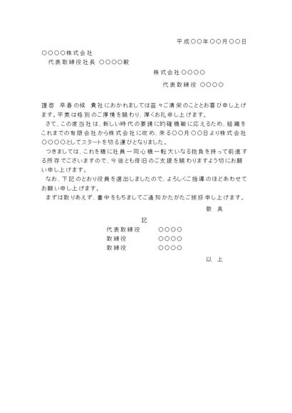 組織変更の挨拶状