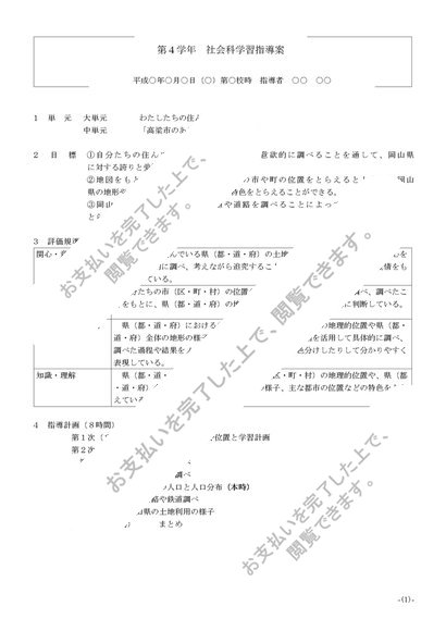 社会科教育法 「3年生または4年生の地域学習について、具体的な学習指導案を作成しなさい。」