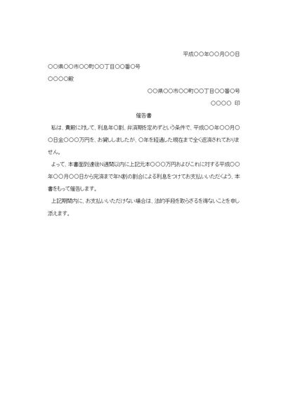 貸金の請求書