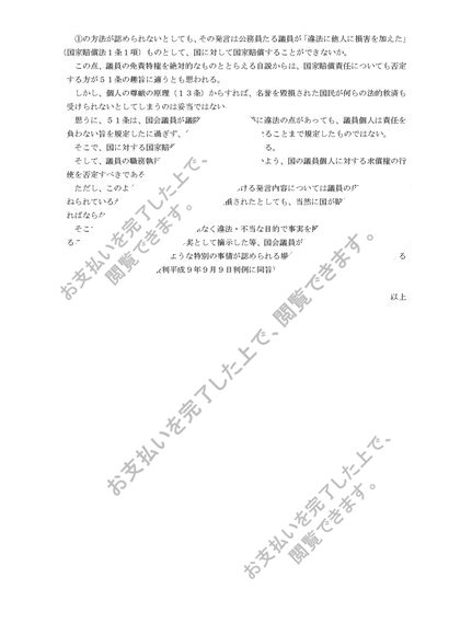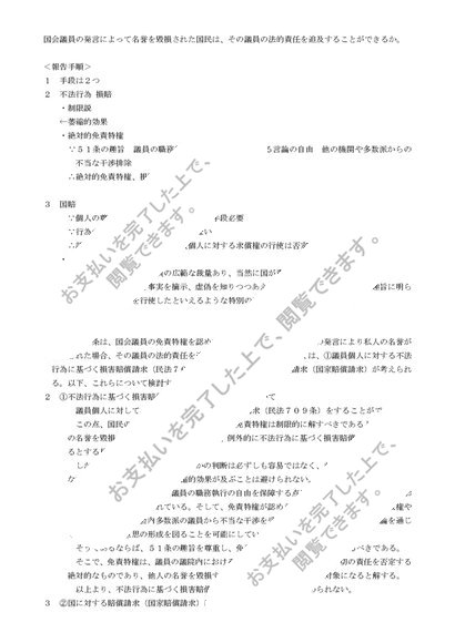 国会議員の発言と私人の名誉毀損(答案構成例)