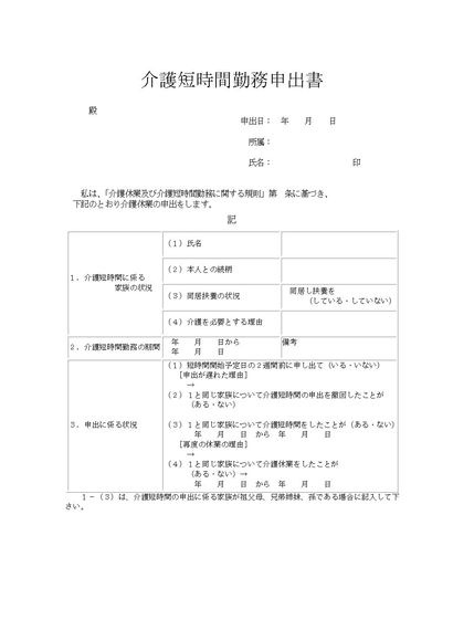 介護短時間勤務申出書