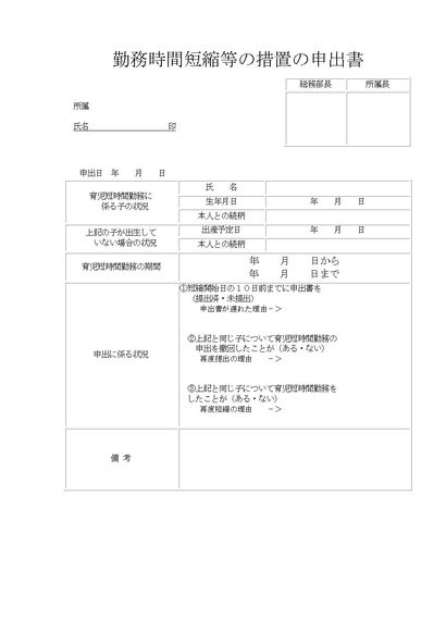 勤務時間短縮等の措置の申出書