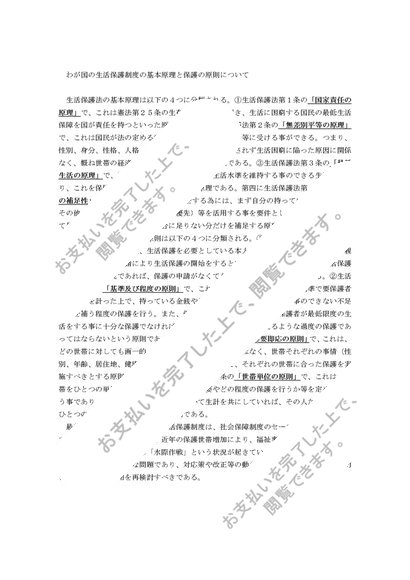 生活保護制度の基本原理と保護の原則について