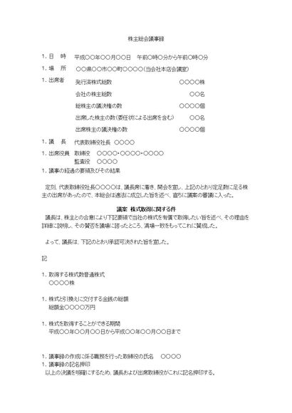 株主総会議事録(株式取得について)