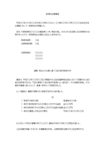 取締役会議事録(自己株式取得について)