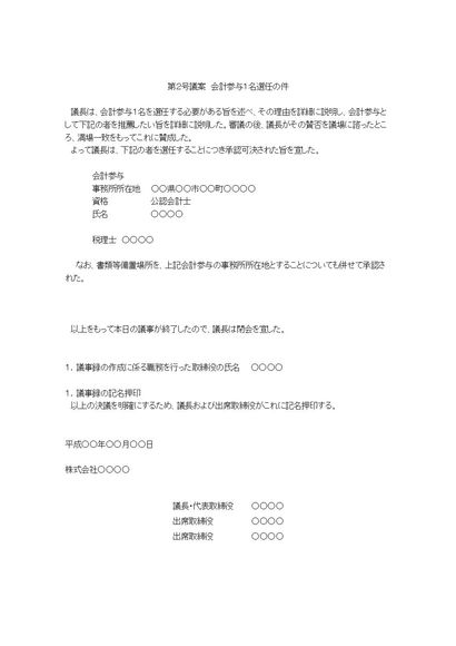 株主総会議事録(会計参与の設置について)
