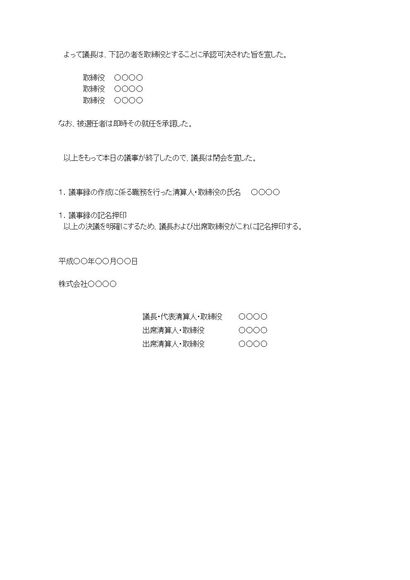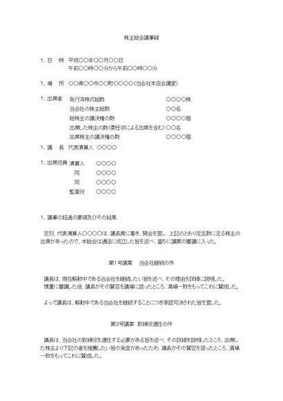 株主総会議事録(会社継続に伴う取締役選任について)