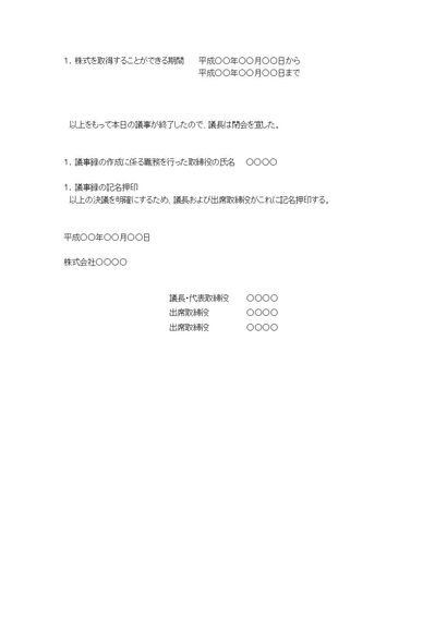 株主総会議事録(株式取得について)