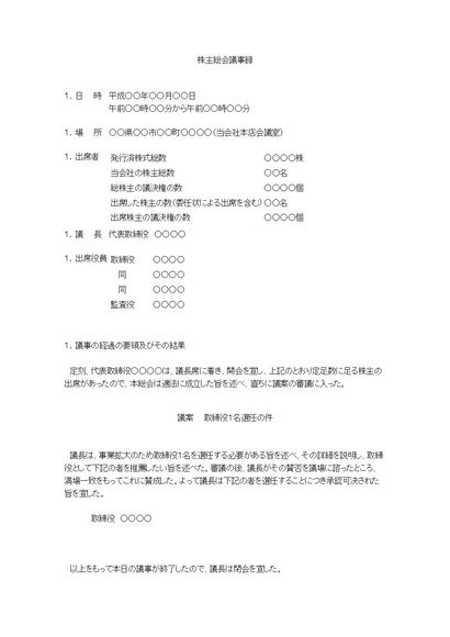 株主総会議事録(取締役の選任について)