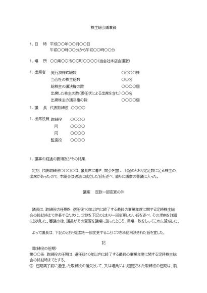 株主総会議事録(取締役の任期伸長について)