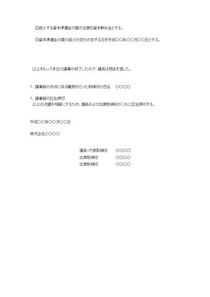 株主総会議事録(準備金額の減少について)
