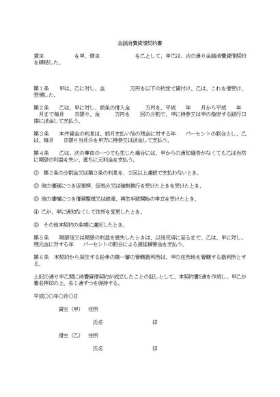 金銭消費貸借契約書_連帯保証人なし HAPPYCAMPUS menu