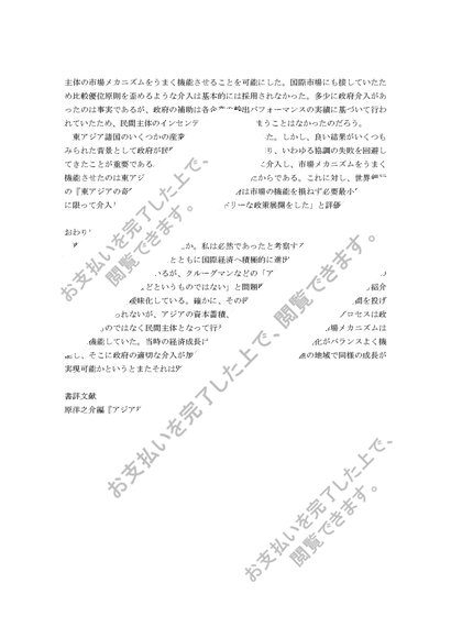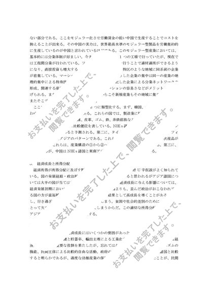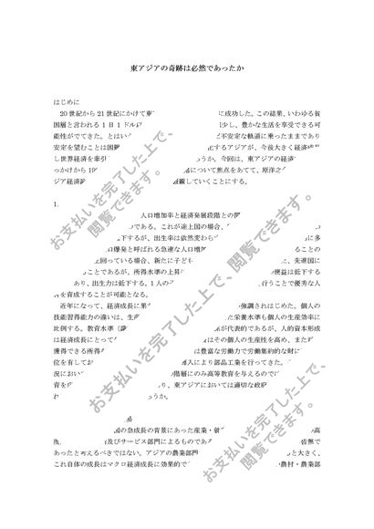 アジア経済論レポート「東アジアの奇跡は必然であったか」