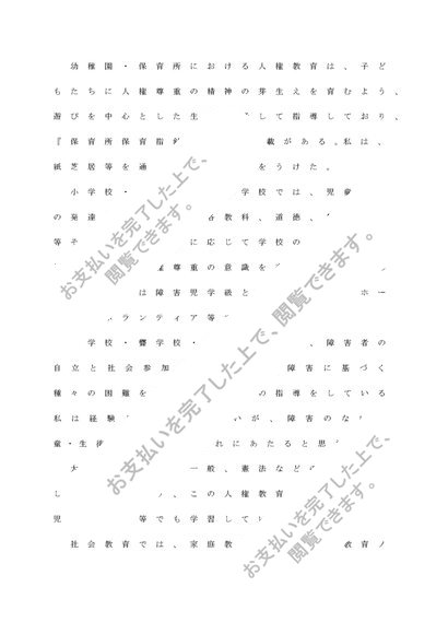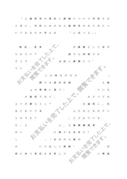 人権教育「人権教育の現状と課題について考察すると共に、学校における人権教育のあり方についてあなたの考えを具体的に述べよ。」