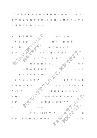 社会科「小学校社会科の授業改善の視点について、小学校学習指導要領(社会編)を根拠にしながら具体的に述べよ。」