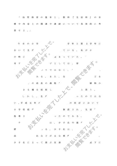 生活「幼児保育の基本と、教科『生活科』の目標や内容との関連や連続について具体的に考察せよ。」