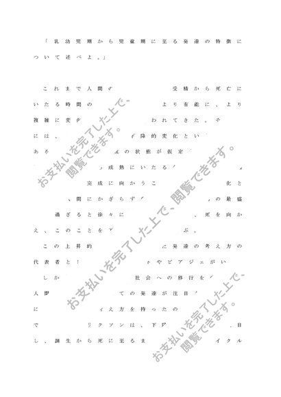 発達心理学「乳幼児期から児童期に至る発達の特徴について述べよ。」