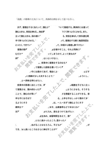 国語科概論 科目最終試験 「音読」の指導の工夫について、具体的な例を示して述べなさい。