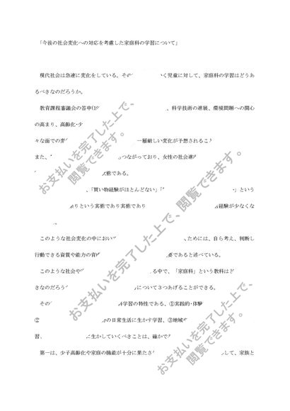 家庭科指導法「今後の社会変化への対応を考慮した家庭科の学習について」