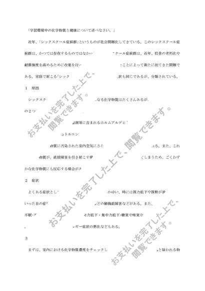 総合演習「学習環境中の化学物質と健康について述べなさい。」