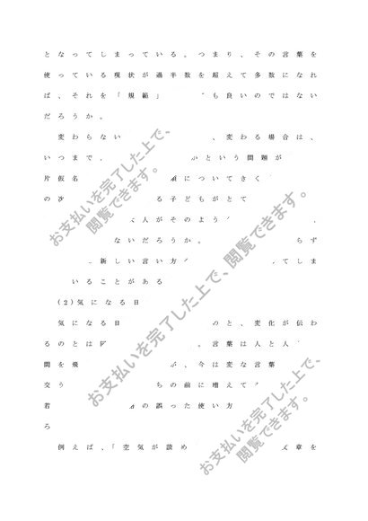 自分及び周囲に見られる日本語の表現や理解に関する疑問点、問題点を見つけ、その類例を集めると共にその原因と解決法について自分なりの見解を述べる。