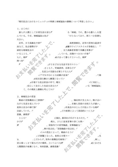 現代社会におけるコミュニティの特徴と地域福祉の課題