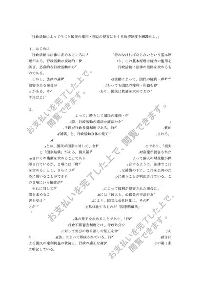 行政活動によって生じた国民の権利・利益の侵害に対する救済制度