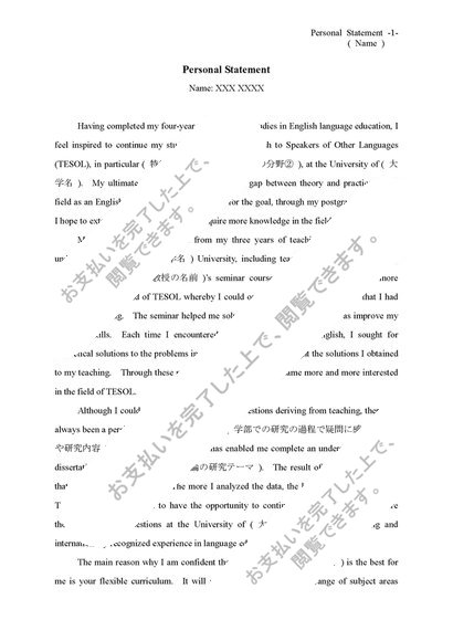 UK3大学からの合格済! Personal Statement (イギリス大学院 TESOL留学志望理由書) ネイティヴによる添削済