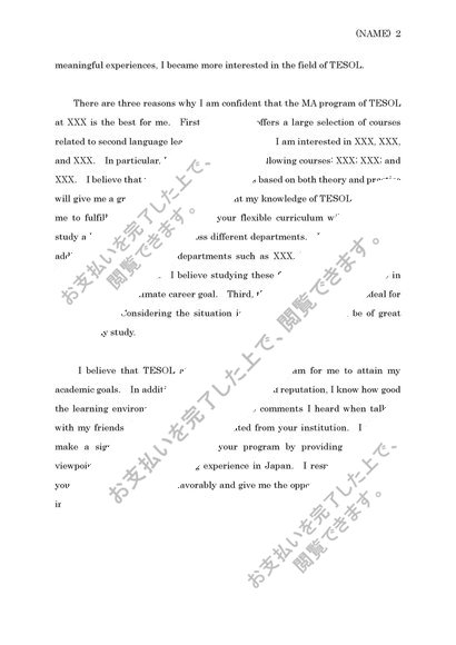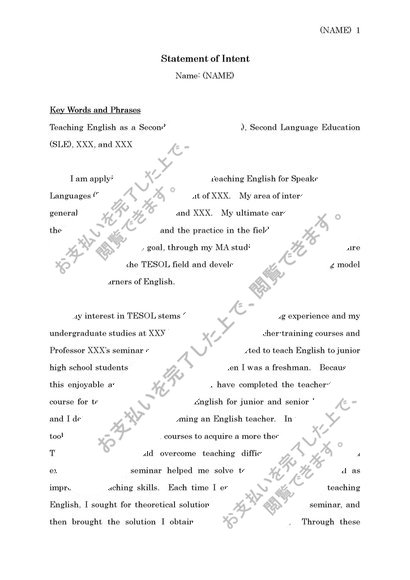 合格済! Statement of Intent (TESOL留学志望理由書) ネイティヴによる添削済