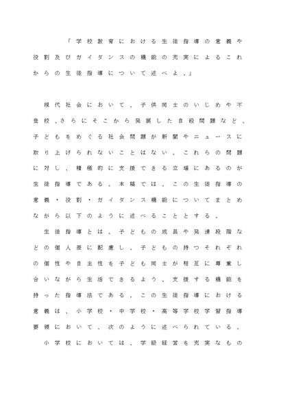 学校教育における生徒指導の意義や役割及びガイダンスの機能の充実によるこれからの生徒指導について述べよ