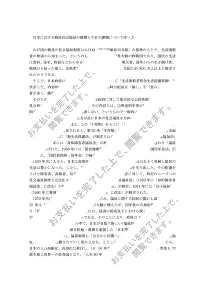 日本における戦後社会福祉の展開と今日の課題について述べよ