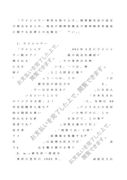 ライシャワー事件による、精神衛生法の改正、現在の精神保健及び精神障害者福祉に関する法律との比較