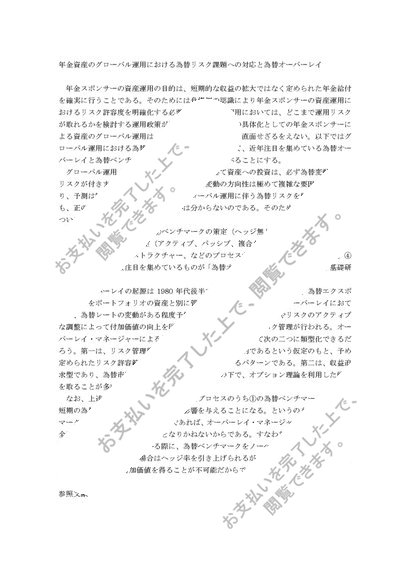 年金資産のグローバル運用における為替リスク課題への対応と為替オーバーレイ