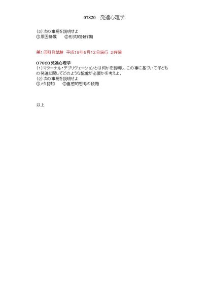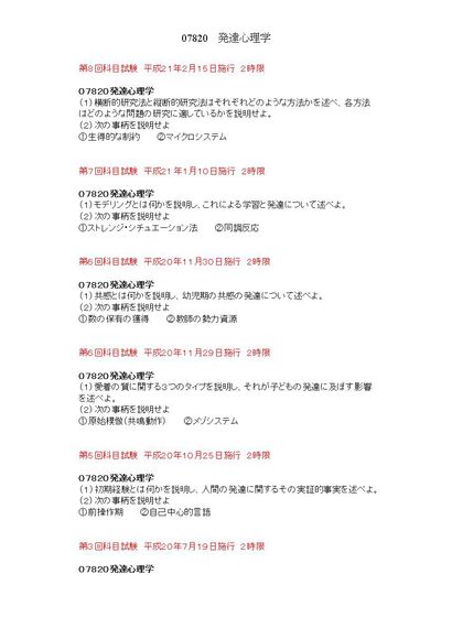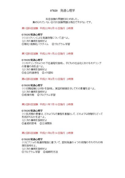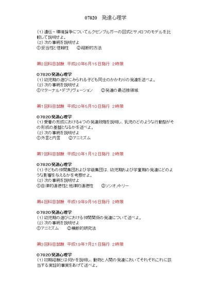発達心理学 2限 07820 科目試験集