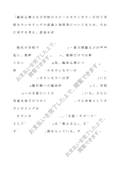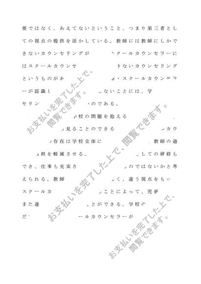 教育相談の研究レポート 第2設題 「臨床心理士など学校のスクールカウンセラーが行う学校カウンセリングの意義と効用等についてまとめ、それに対する考え、意見を述べよ。」