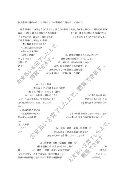 国語科概論 科目最終試験 「作文指導の基礎的なことがらについて具体的な例を示して述べよ」