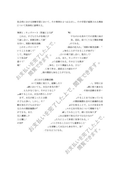 社会科概論科目最終試験:社会科における体験的学習について、その事例を2つ以上示し、その学習が重視される理由を具体的に説明せよ