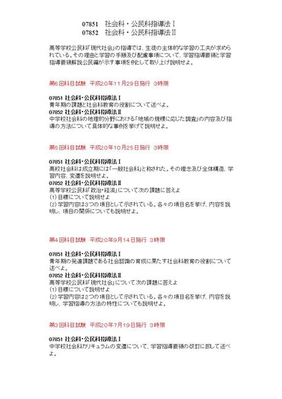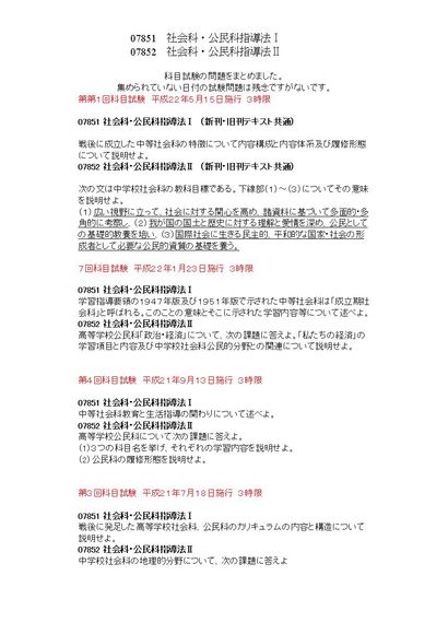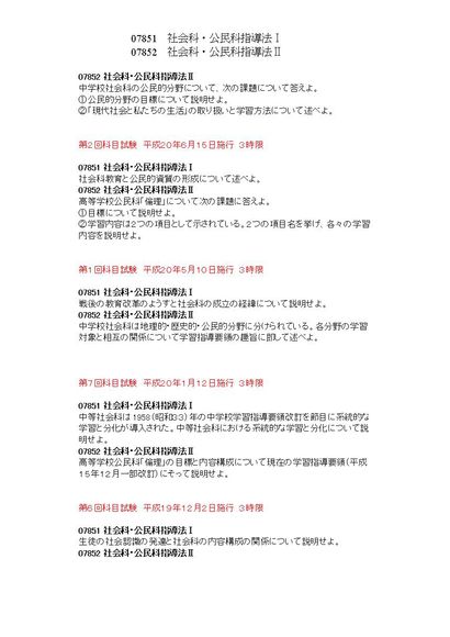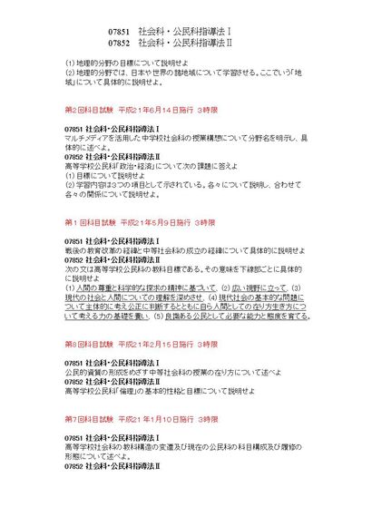 社会科公民科指導法Ⅰ/Ⅱ 07851/07852 3限 科目試験集