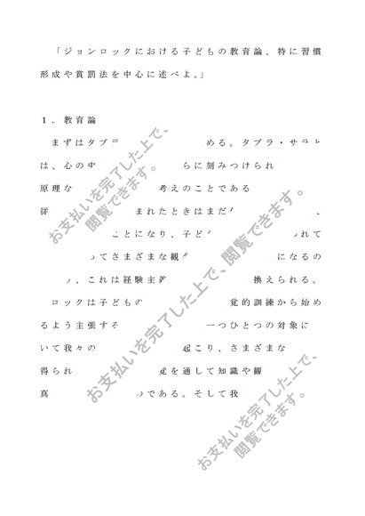 教育原論レポート第2設題:「ジョンロックにおける子どもの教育論、特に習慣形成や賞罰法を中心に述べよ。」