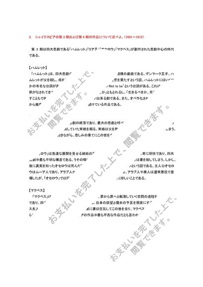 英文学史 最終科目試験 設問と解答 全6問 合格済
