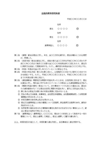金銭消費賃借契約書 HAPPYCAMPUS menu