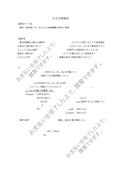 親水・疎水性パタン化された有機薄膜の作成と利用(5月月報)