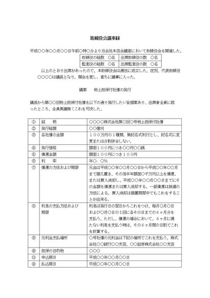 取締役会議事録(社債の発行について)