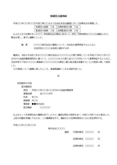 取締役会議事録(借財について)