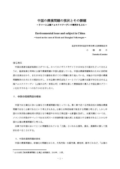 中国の環境問題の現状とその課題-リコーと上海フォルクスワーゲンの事例をもとに-