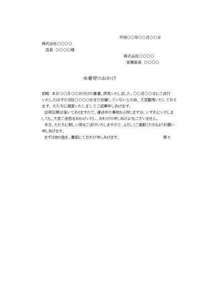 詫び状(商品未着荷)
