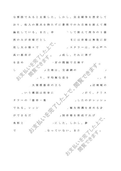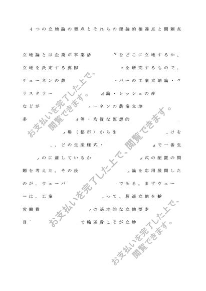 4つの立地論の要点とそれらの理論的相違点と問題点