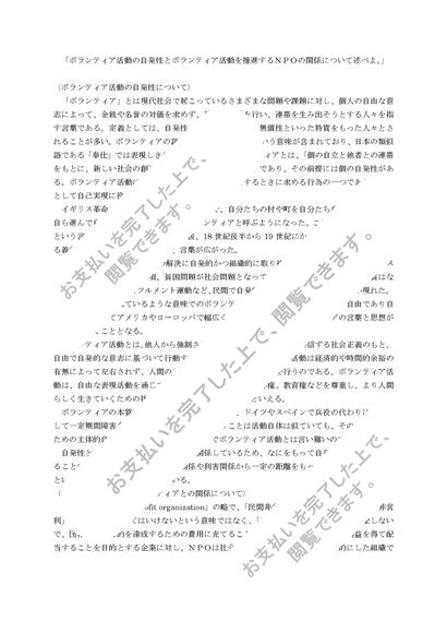 ボランティア活動の自発性とボランティア活動を推進するNPOの関係について述べよ
