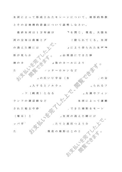 氷河によって形成されたモレーンについて、地形的特徴とその古地理的意義について説明しなさい。
