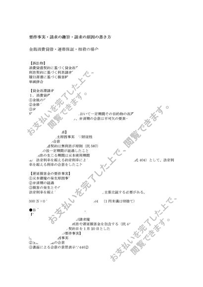 訴状の書き方:要件事実・請求の趣旨・請求の原因の書き方(金銭消費貸借・連帯保証・相殺の場合)